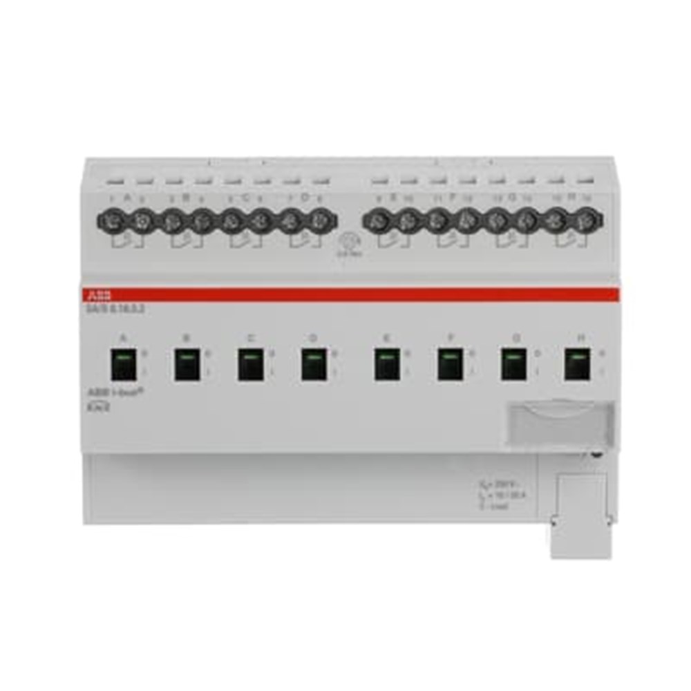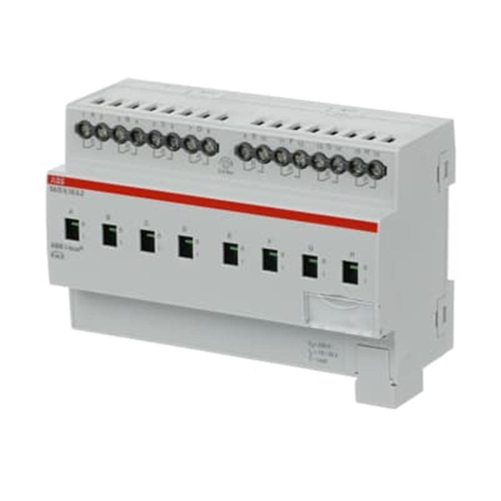 • Long Description: The switch actuator uses potential free contacts to switch 8 independent electrical loads via the ABB i-bus® KNX. The device features a manual operation and displaying of the switching state of the outputs. The 16/20 A, 16 A-AC3 (C-load) device is especially suited for loads with high surge currents e.g. flourescent lighting acc. EN 60669.