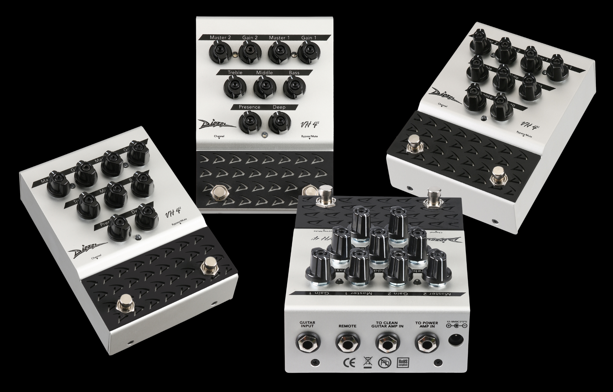 Diezel VH4 Pedal All Analog pedal based on legendary VH4 Amp Unlike typical overdrive pedals, the VH4 Pedal is a true preamp that delivers genuine Diezel tone—no emulation, just pure authenticity. Its full EQ section (Bass, Mid, Treble, Deep, and Presence) lets you shape the signature VH4 sound, while the Gain control covers everything from sparkling cleans to searing leads. Use it as an overdrive into your amp’s front end or as a standalone preamp into a power amp for raw Diezel power. It includes two outputs: one for standard amp input, the other for connecting directly to a power section.