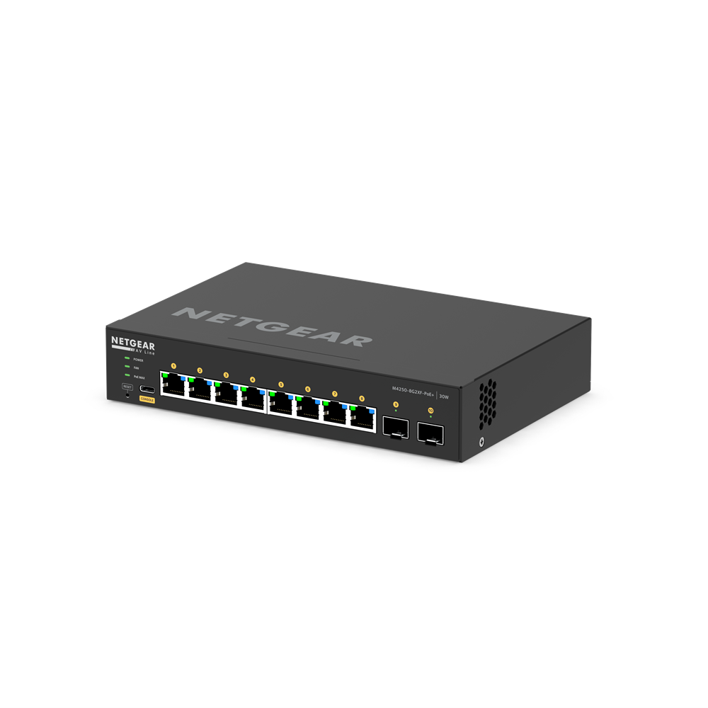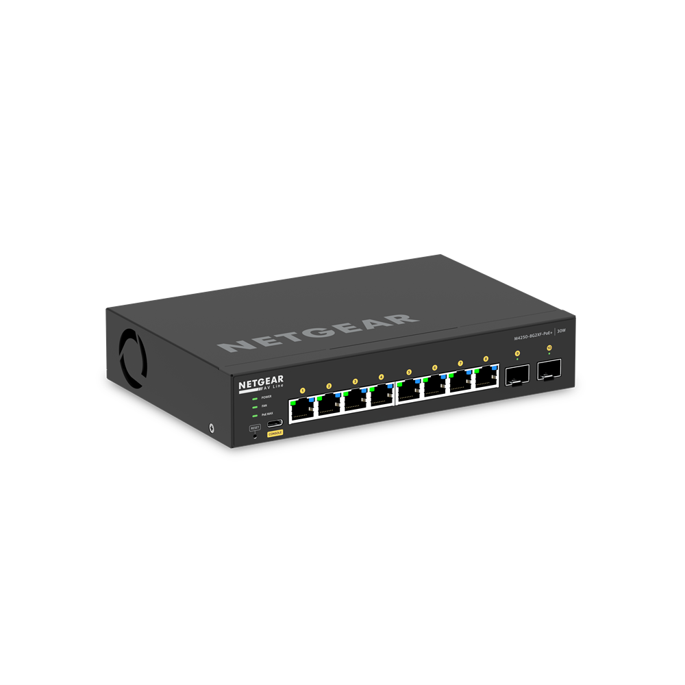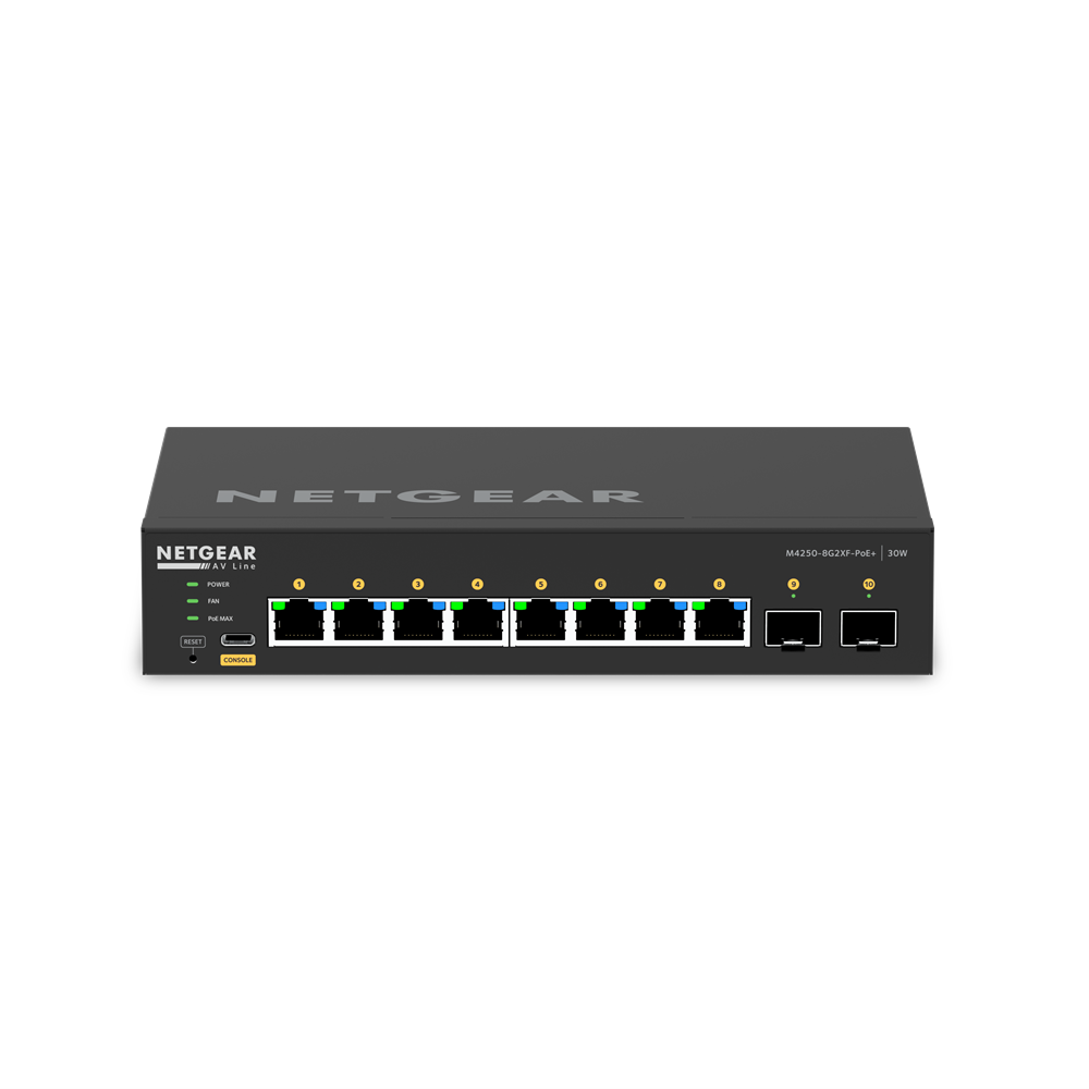 Primary Port Speed : 1 GigabitNumber of Ports : 10 (8x 1G PoE+, 2x SFP+)PoE Ports / Budget : 8 PoE+ (30W/port), 220W BudgetIGMP Support : Enhanced (NETGEAR IGMP Plus™)Jumbo Frame Support : Yes, up to 12kbAVB Support : Yes. Electronic license required, activation key sent via email (AVB4210PX-10000S)Acoustics : Fanless or 3dB at 25ºCPower Consumption : With PoE: 257.9W/880.47Btu/hrWithout PoE : 18.14W/61.93Btu/hrStandby without any port connection : 9.51W/32.47Btu/hr