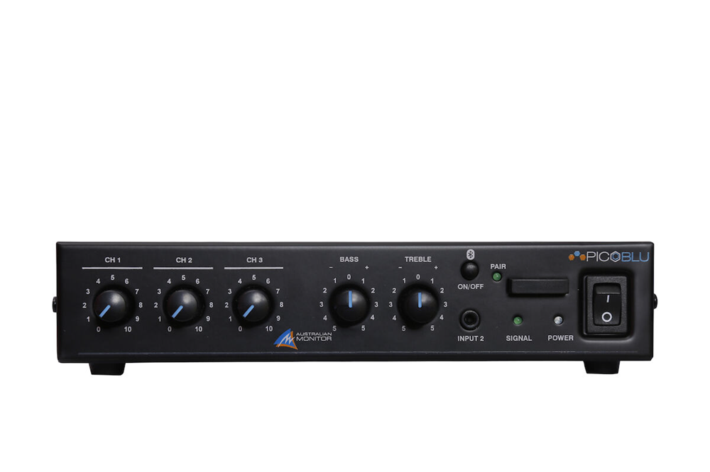 The Australian Monitor PICOBLU is a small form factor 30W Mixer Amplifier specifically designed for small space applications such as cafes, restaurants, small retail and classrooms.