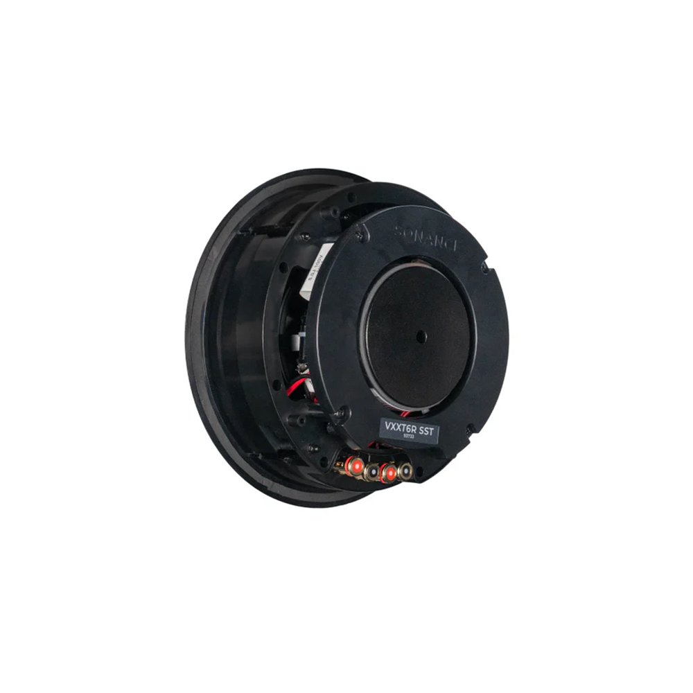 The VXXT6R SST offers rich stereo performance from a single, round in-ceiling speaker, perfect for extreme environments with limited speaker locations. Its IP66-rated, dual voice coil design includes the Sonance XPC (Extreme Post Capture) grille retention system, and comes in round or square, micro trim or trimless bezel options to disappear into the ceiling. Trimless grille and square grilles optional, sold separately.