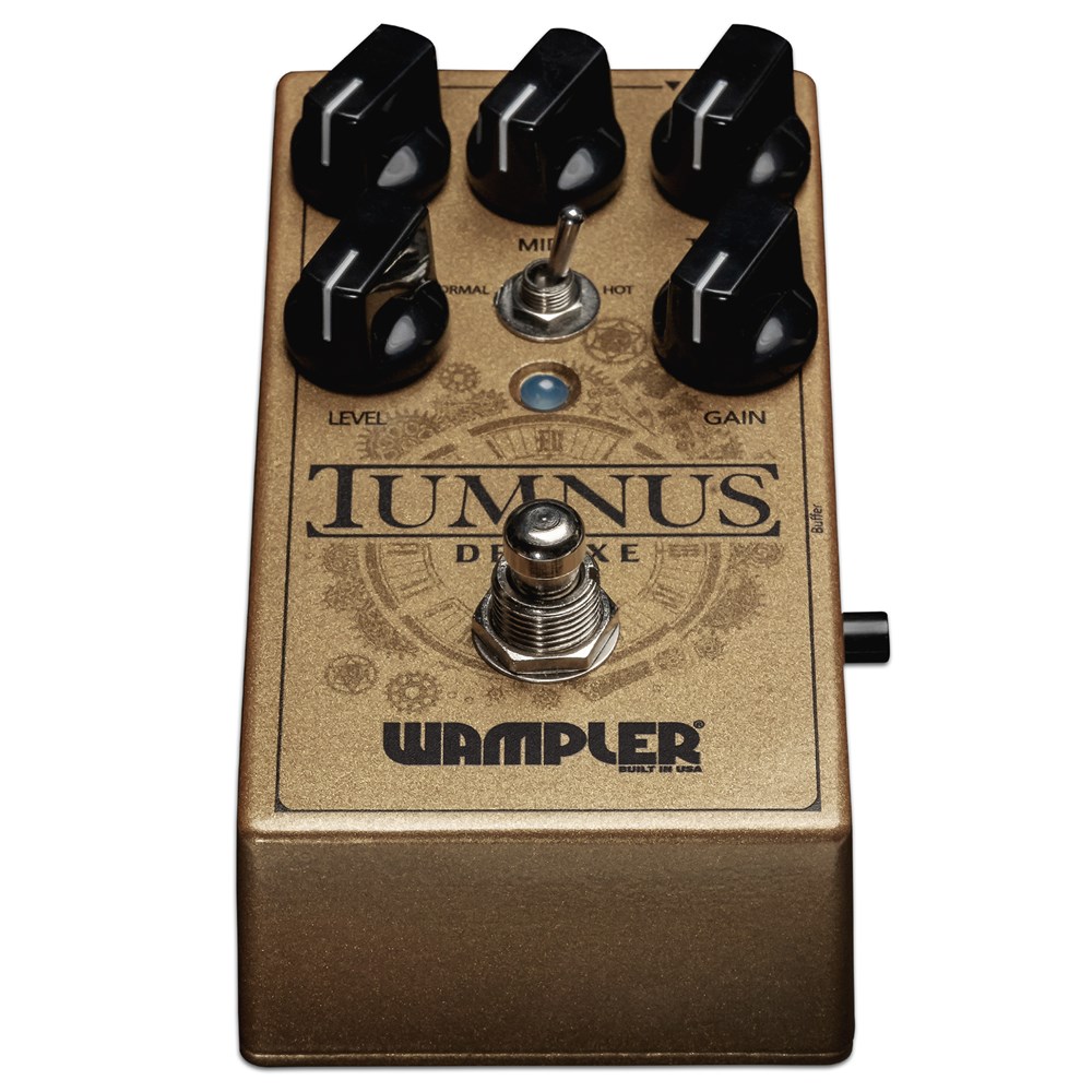 With the first iteration of the Tumnus, Wampler perfected their take on the sound of THE mythical overdrive. With the release of the Tumnus Deluxe, Brian has set the new standard. Thanks in large part to the design’s articulate-sounding buffer, all of the clarity, punch, and detailed breakup of the original Tumnus are still there. But if you prefer the sound of true bypass performance, just hit the switch on the side of the pedal for uncolored tonal purity. Brian also injected the Tumnus Deluxe with a level of tonal flexibility not previously available on this style of drive. Active bass and mid controls, as well as a treble control, the same as the pedal it was inspired by, encourages you to sculpt the tone from this pedal to the demands of your rig. Whether you’re boosting a driven amp or another pedal, using the pedal as a stand-alone overdrive, or crowning it your “always on” tonal sweetener, you’ll find the Tumnus Deluxe’s wide-ranging controls make it much more than just another clone.