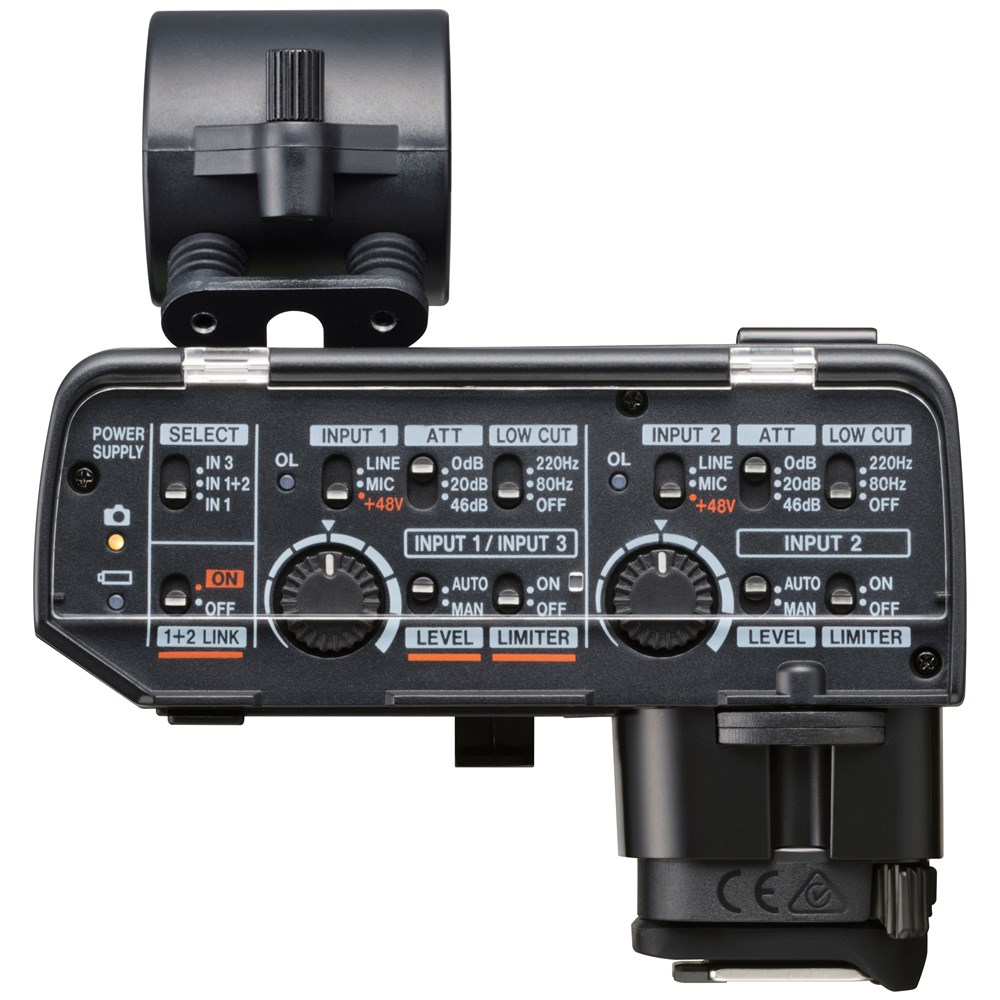 A cold shoe on the top panel expands setting flexibility. The shock mount mechanism is vibration resistant, noise-friendly and allows connection of various microphones. Two XLR/TRS input terminals and one 1/8-inch stereo mini microphone input terminals supports multiple shooting scenarios. CA-XLR2d has the flexibility that adapts to the gear necessary for the job.