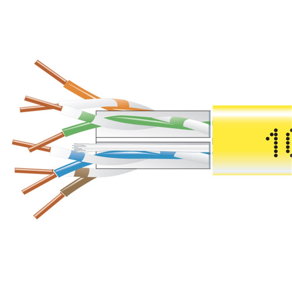 • CAT6 550-MHz Solid Bulk Cable UTP CMP Plenum YL 1000FT Pull- Box