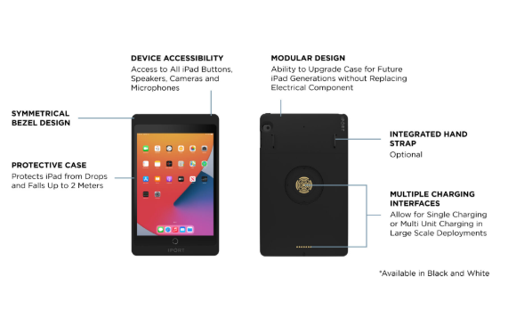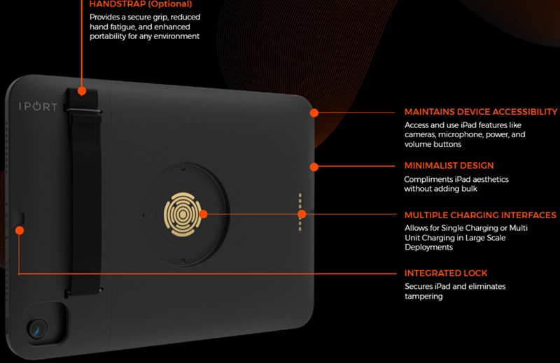 CONNECT PRO is the next generation of IPORT products for enabling iPad mobility in residential and commercial applications. Built upon a highly capable and modular platform, the CONNECT PRO line of products provide an unparalleled breadth and depth of capabilities for holding, charging, protecting and connecting iPad and iOS Devices. The CONNECT PRO Case provides both a Station interface and a Dock interface connector, allowing iPad to mount and connect to any product in the lineup. Case protects iPad from drops and falls up to 2 meters. Enable the Case lock to prevent un-authorized USB-sync or removal of iPad from the case. Combine the internal lock with any Station containing a Case lock to deliver a fully secure temporary locking system. Add a hand strap at any point for extra utility or use the strap loops to connect a shoulder strap or any other harness. Use commercial cleaners with confidence to wipe down the entire case, including exposed electronics for a fully sanitary solution. The Case is ready out of the box for charging, USB communications and network data connections in concert with capable mounting stations (stations sold separately). Utilize all iPad features while in the Case including power button, microphones and speakers. The symmetrical front bezel with hidden speaker wave guides enables a refined aesthetic when mounted on a wall. Say hello to the flexible future of mobile business with IPORT's CONNECT PRO suite of products and CONNECT PRO Case at the core.