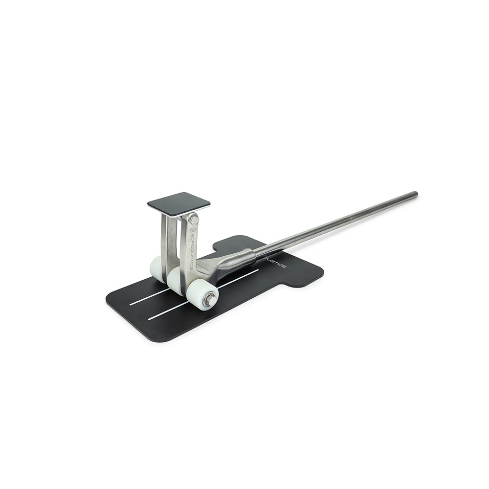The F1 Jack is a tool designed to raise the side of a speaker to allow access underneath for the installation of the IsoAcoustics GAIA and GAIA-TITAN isolators.