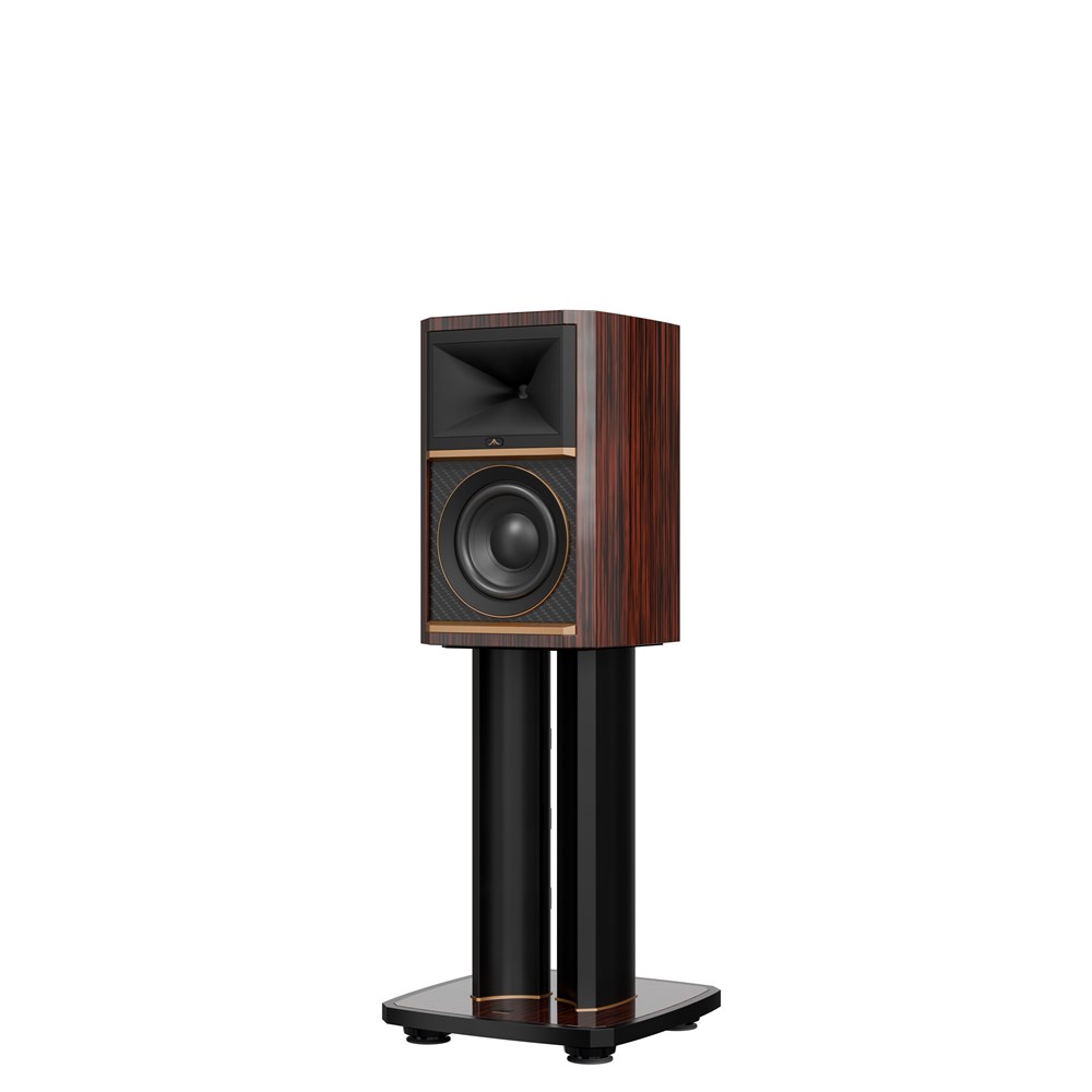 The Summit Ama is a premium stand-mount loudspeaker designed for passionate music lovers. It boasts an innovative array of drivers, starting with JBL's exclusive D2815K 1.5-inch dual-diaphragm compression driver, paired with a large Sonoglass® High-Definition Imaging (HDI™) horn for superior sound projection. The speaker's robust foundation is built around an 8-inch cast-frame woofer, featuring a unique triple-layer Hybrid Carbon Cellulose Composite Cone (HC4). This cone, crafted from a special blend of carbon fiber and pure pulp, along with a closed-cell foam core, ensures optimal stiffness and mass, enabling high output with minimal distortion and impressive power handling.
