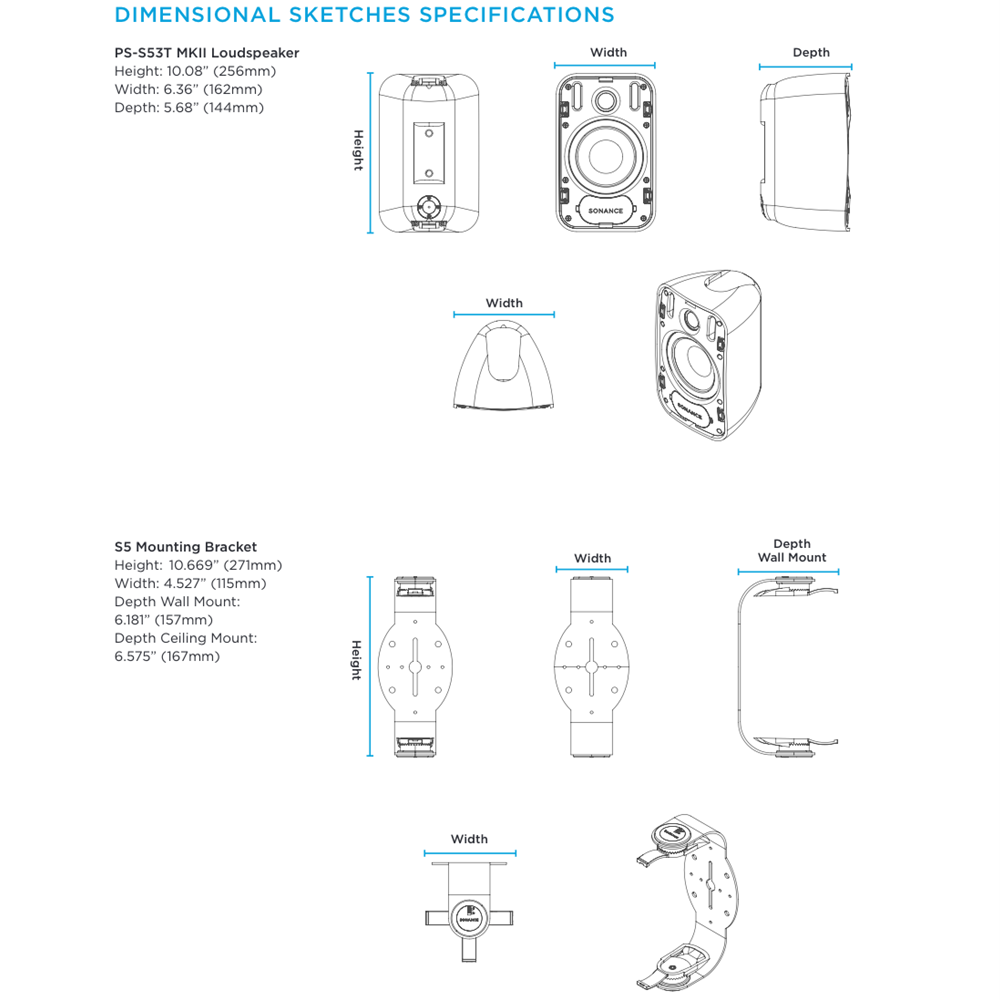 Professional Series 5" Surface Mount MKII LoudspeakerSonance Professional Series PS-S53T MKII Surface-Mount Loudspeakers feature the Patented FastMount bracket and front cable connection to speed up the installation process and provide a clean appearance.