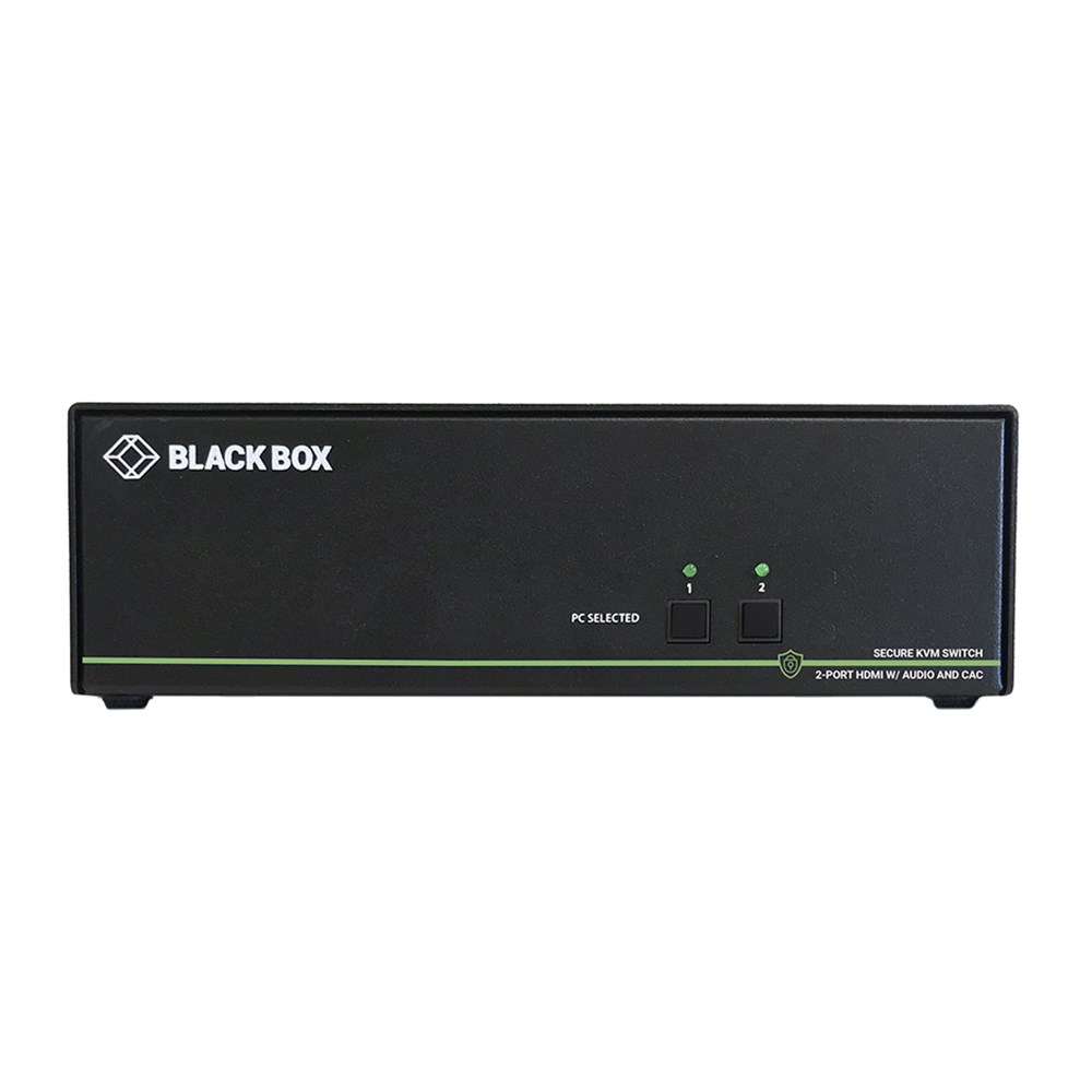 The Black Box Secure KVM Desktop Switches allow a single operator to control up to four HDMI computers from a single workplace using one set of keyboard and mouse and one HDMI monitor. They provide peace of mind knowing that each connection is secure. Options include 2- or 4-port switches with CAC support.