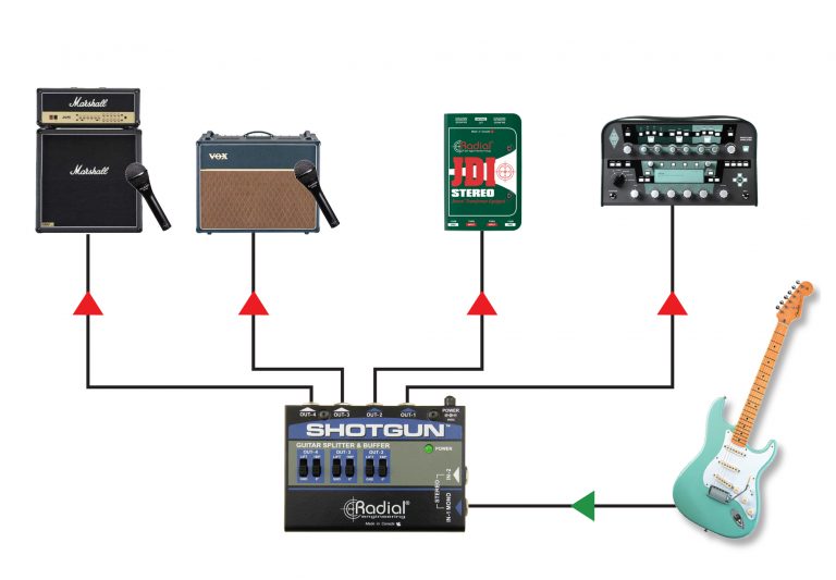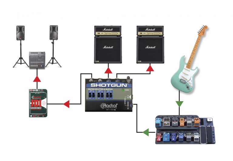 "The Radial Shotgun is a multi-amp distro that drives my signal up to 4 amps at once. It takes care of everything. Fantastic."