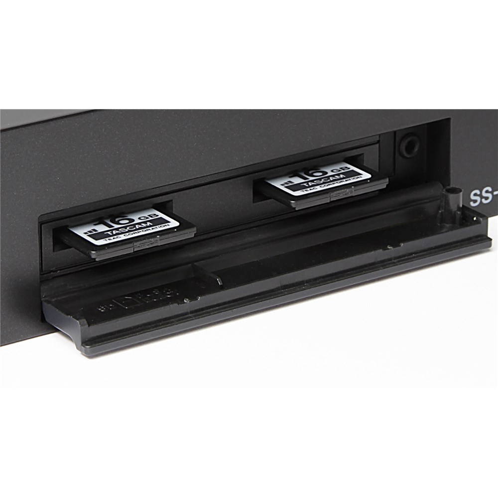 Versatile SD card and USB flash memory devices are well-selected to play and record media. The SS-CDR250N also supports CD media. The SD card slot is compatible with SDXC type cards, as well as SD/SDHC types. It complies with the SD card that contains up to 128GB memory.